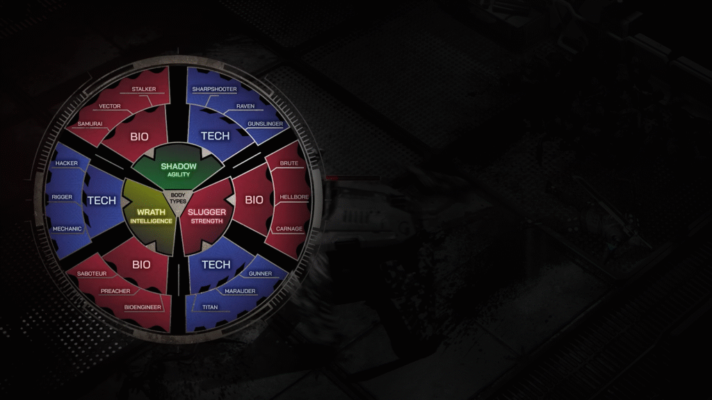 Vývojáři v rámci kickstarter kampaně slibují tři základní typy postav, které se dále budou větvit dle toho, zda se rozhodneme postavu směrovat spíše k TECH úpravám pomocí implantátů, nebo k BIO úpravám pomocí modifikace naší DNA.